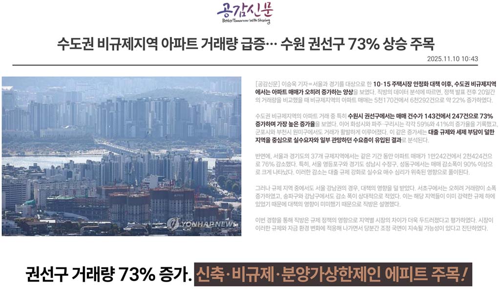 수원시 유일 성장형 비규제지역!